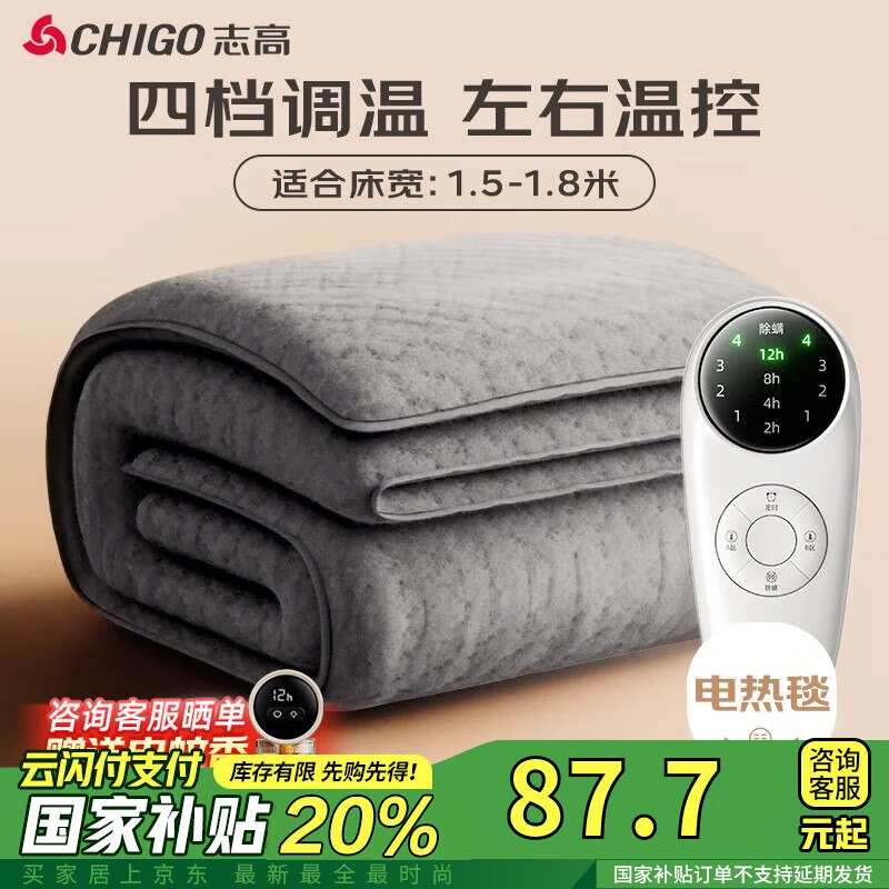 🎒 自营志高 双人电热毯 1.5x1.8米