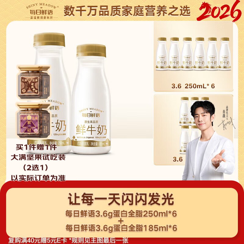每日鲜语 3.6g蛋白250mlx6+3.6g蛋白185mlx6共12瓶,砸79-15券,2首单,凑后【21】