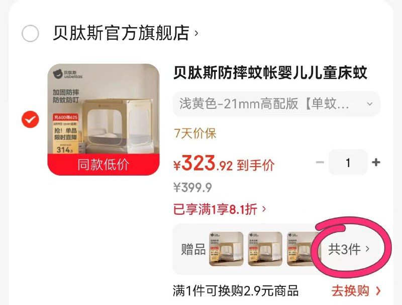 「贝肽斯婴儿防摔蚊賬」
