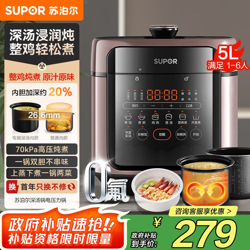 【自营】苏泊尔 多功能电压力锅5L大容量